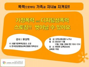 [모집] “가정폭력&디지털성폭력 벗어날 수 있어요” 기획강좌 신청안내
